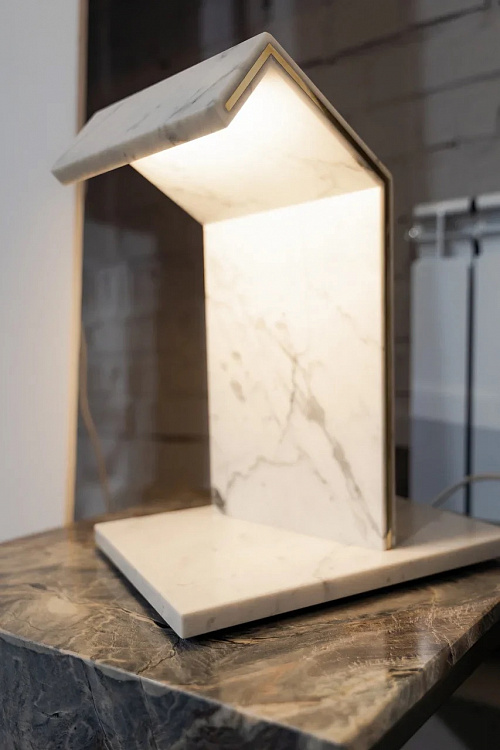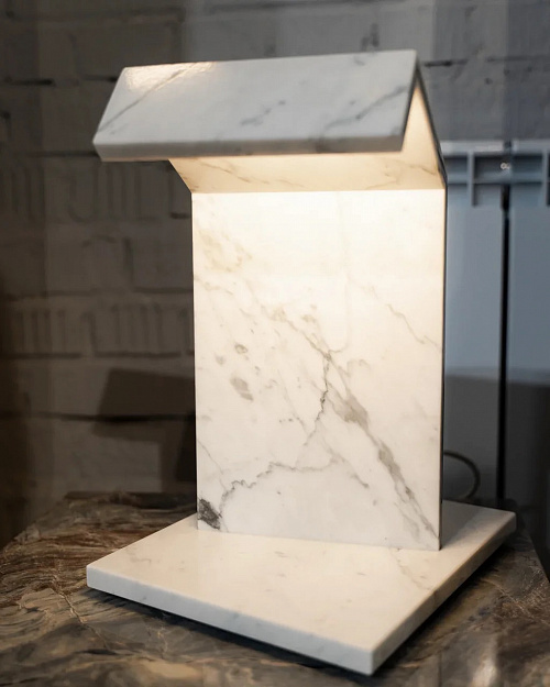 White crane - настольный светильник из белого мрамора Bianco Carrara