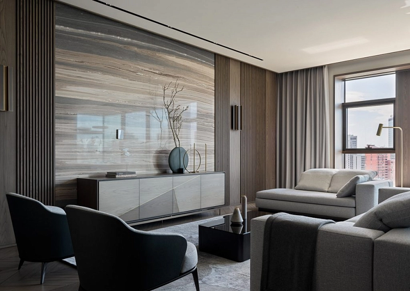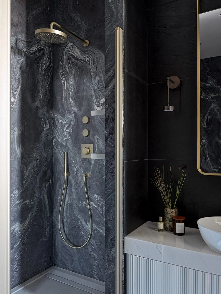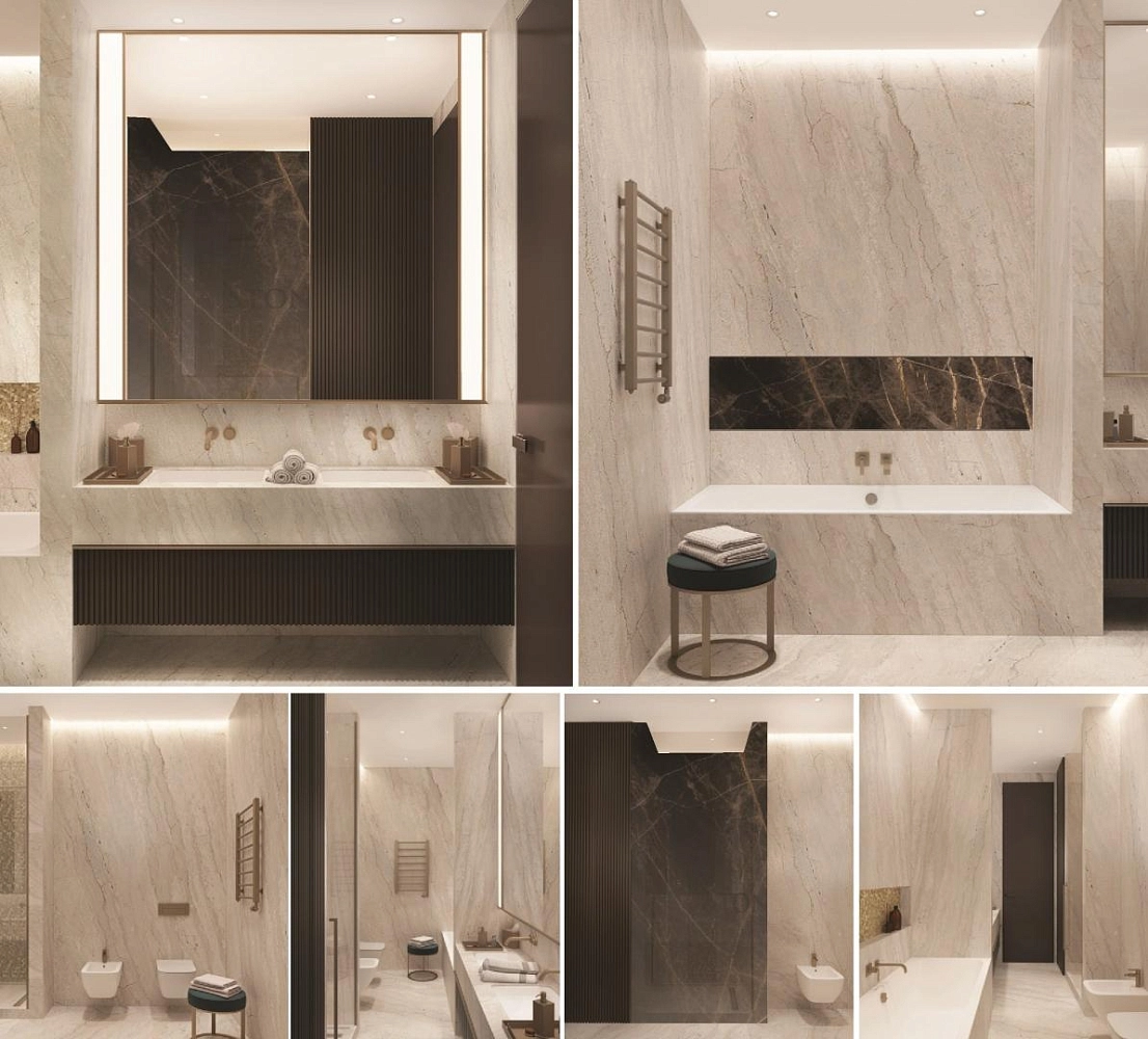 Отделка стен и санузлов мрамором в частной квартире